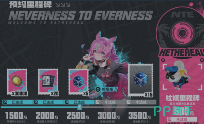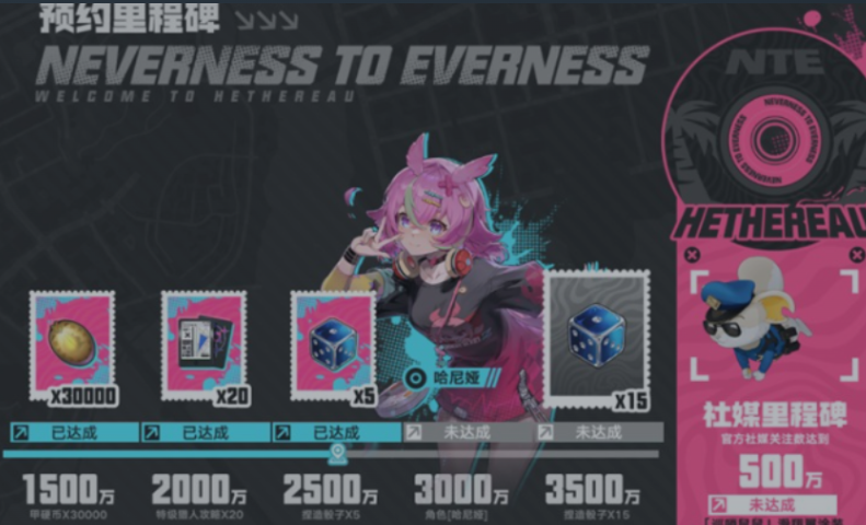 除基础奖励外,官方同步设定了阶梯式预约里程碑激励机制:当全渠道预约人数突破300万,所有预约用户将额外获得限定角色「哈尼亚」——该角色为纯预约独占,不会通过任何后续方式(含商城上架、活动补领、充值获取等)开放获取;若预约总量达3500万,则全员再增发15枚「捏造的骰子」。该道具属于高稀有度功能性资源,可直接提升角色抽取概率,是构建强力阵容的关键助力。