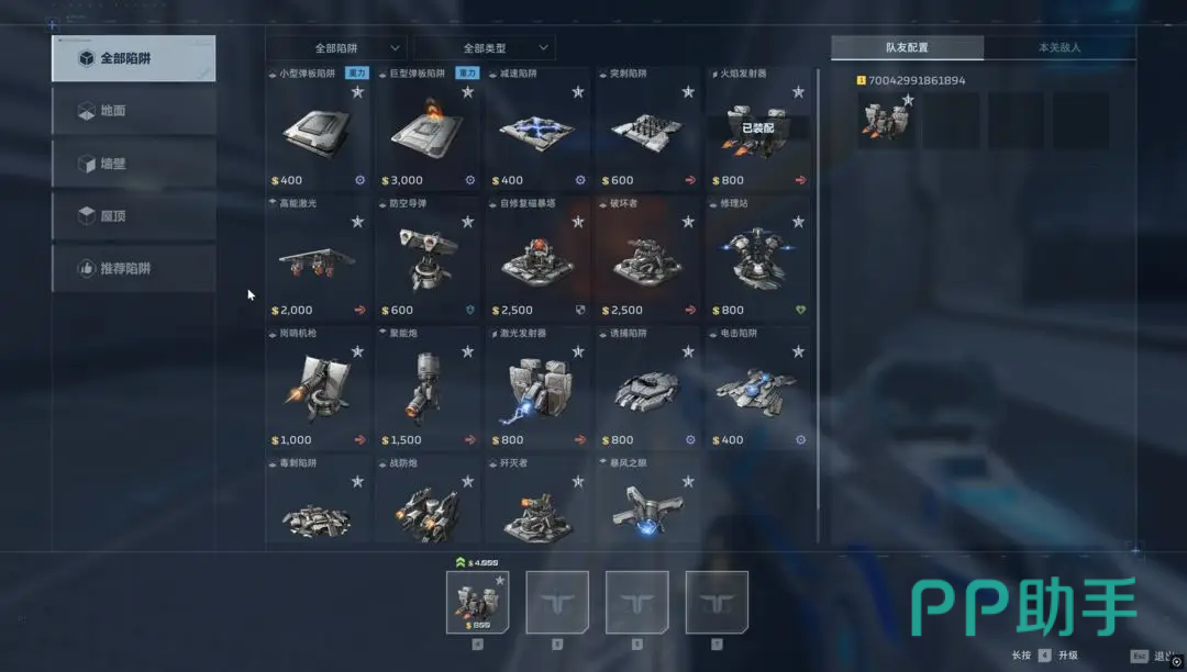 开局阶段需优先激活陷阱栏,从中选取已解锁的4种陷阱进行携带。已部署陷阱可通过右下角操作取消,支持实时更换。使用数字键快捷放置,长按对应按键可即时升级,目标应为全程维持满级(4级)状态。若位置误判,靠近后可无损拆除,不消耗金币资源。