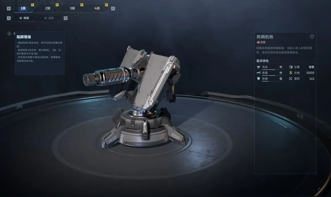 进入主界面“选择玩法”→“塔防”后,可抵达“研究中心”。此处为陷阱研发中枢,承担解锁、升级与属性强化功能。陷阱是本模式绝对主力输出单元,其综合效能普遍高于常规枪械。每种陷阱均有明确解锁条件:包括主线任务进度、副本通关奖励、商店货币兑换等。初始解锁为1级,对局中可升至3级;4级上限必须通过研究中心完成前置升级,否则实战无法突破该等级限制。