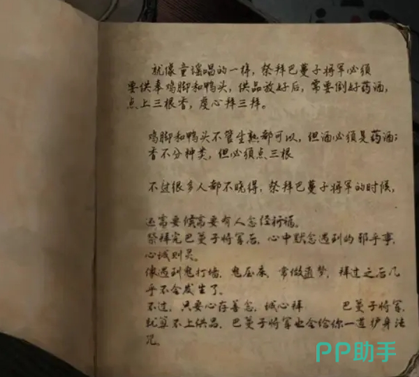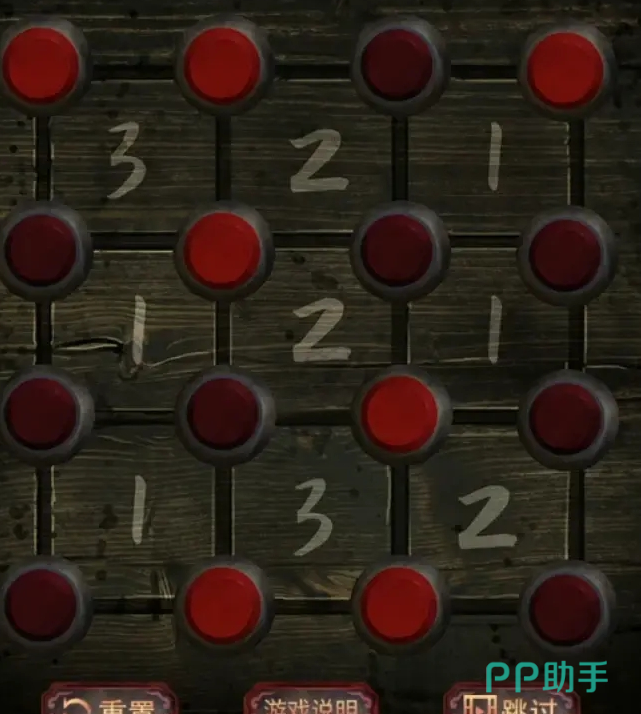先和算命进行交流,之后往前走,再返回去就会发现算命的不见了,这时就能自由调查了,先从神像旁边开始调查,一顿调查就可以发现密码是37857,然后可以进入大门了,有个象棋谜题,一样的鞋架还是一样的味道,记下来后从门左边箱子上拿到扩音器。右边桌子上的密码盒调整象棋密码,线索就是左边鞋架后面的位置,稍微移动一下鞋子看清棋子,不是很难,然后打开盒子拿到一把钥匙。