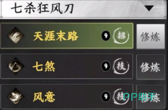 若论综合性能最强的刀法,七杀狂风刀无疑位居前列。尽管该武学仅有两个被动技能,但实战价值极高。主动技能“天涯末路”可将远处敌人拉至身前,并在此过程中持续削减对方内力值,有效限制对手施法节奏。第一个被动“七煞”规定:当角色生命值低于10%时,自动获得额外AOE伤害加成,极大提升了残血反杀的可能性;第二个被动“风意”则实现了资源循环——每释放一次技能即可恢复5%的蓝量,确保连招不断、续航无忧。