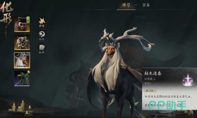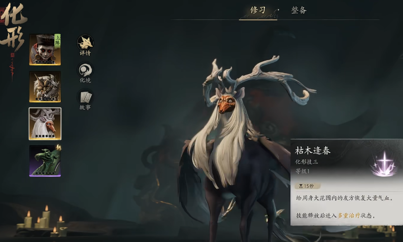 飞廉拥有1个基础技能与3个化形技能。基础技【回风续命】可为目标队友恢复一定比例生命值;化形技1【风逝】具备穿透效果,无视敌方防御机制,同时施放时为自身附加生命恢复;化形技2【云霓化生】作用于小范围全体友方单位,提供持续治疗;化形技3【枯木逢春】则扩大治疗半径,覆盖更广区域内的所有己方角色,是团队持久作战的核心保障。