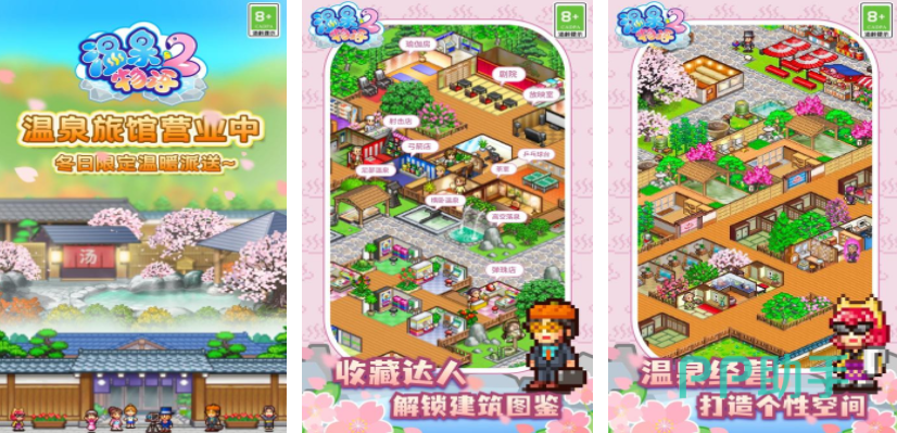 温泉物语2,是一个主打温泉经营的游戏,每个人都能通过这个游戏开启一场温泉经营之旅,作为温泉的老板,从旅馆的选址、布局规划,到房间类型设计,都由玩家一手操办,同时,种植各类花草树木,装饰庭院,让旅馆充满生机与美感,游戏里顾客类型丰富多样,要根据顾客喜好,合理安排设施,随着旅馆发展,还能举办各种特色活动,如温泉祭,进一步提升旅馆影响力。
