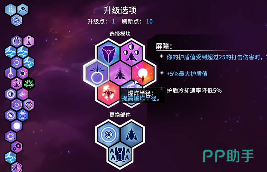 游戏中核心成长机制围绕“模块系统”展开。每个模块相当于独立的功能插件,可装配于主武器上以改变其攻击模式、弹道数量与范围覆盖。例如初始阶段仅支持单发锁定导弹的武器,在装配高等级扩散型模块后,可实现一次性发射10余枚追踪弹的清屏效果;面对高血量Boss时,叠加穿透与连锁伤害模块后,亦能达成瞬秒输出,显著提升后期关卡推进效率与操作反馈爽感。
