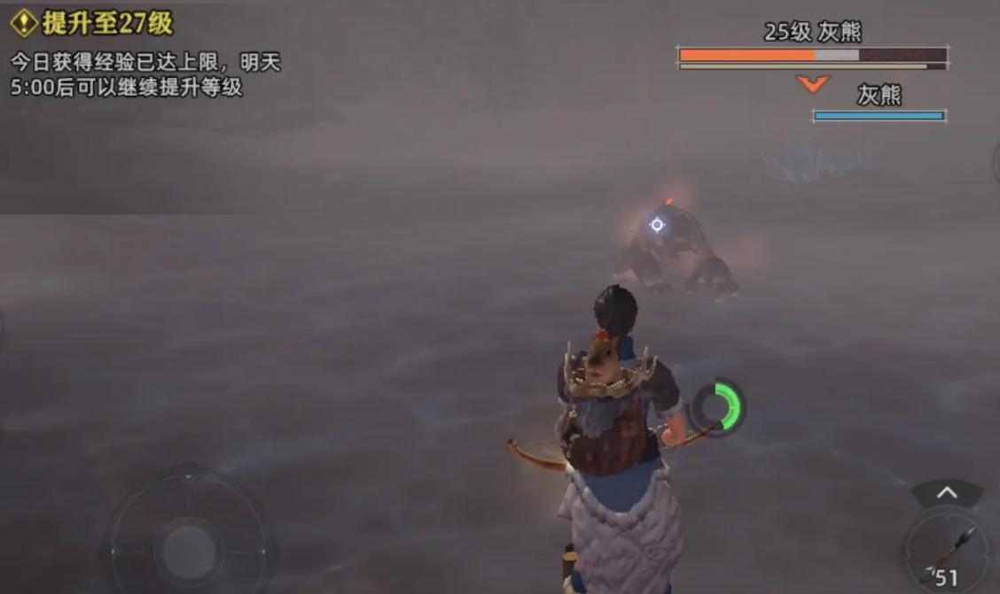 具体操作为:在精英怪巡逻范围边缘搭建小型营地,若处于雪地环境,可在斜坡下方设置篝火以维持体温。引怪时短暂进入其仇恨圈将其吸引,随后退回营地高台位置。借助地形高度优势,配合弓箭进行远程消耗,保持距离持续拉扯,便可轻松完成击杀。