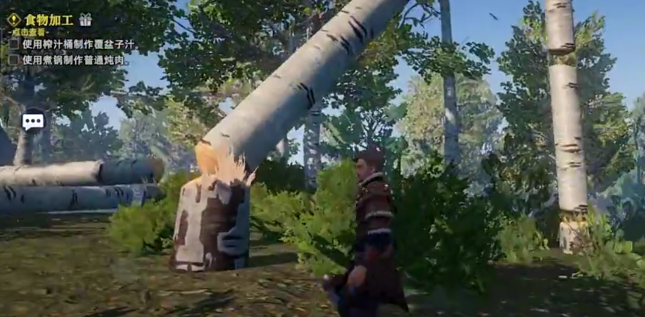 资源采集是生存的基础环节。初期需要大量基础材料如木材和矿石,因此选择合适的采集地点尤为关键。建议前往矿区获取石头,进入森林砍伐树木,合理规划路线可显著提高效率。特别提醒:新手常因逐棵砍伐而耗费过多时间,其实存在一种快速倒树方法——先用工具攻击树干四次,随后使用脚踢动作即可直接推倒,大幅缩短采集周期。