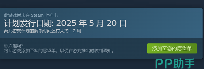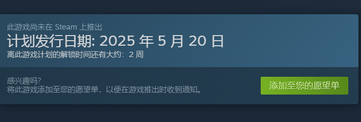 现在游戏已经上线steam商店页面了,可以看到官方给出来的发行日期是2025年5月20日,还有两周左右的时间,我们可以先把它加入心愿单哦,这样出预购的时候就能立马购买了。