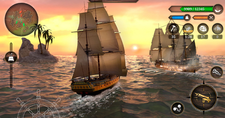 这是一款以18世纪海盗时代为背景的海战策略手游。玩家将扮演海盗船长,驾驶传奇帆船,在加勒比海上展开惊心动魄的对战。游戏融合策略规划与实时操作,玩家需根据战场局势调整战术,利用风向、地形等优势击败敌人。特色在于丰富的帆船种类与装备系统,以及与其他玩家的组队对抗模式。精美的3D画面与逼真的海战体验,让玩家仿佛置身于那个充满冒险与挑战的海盗黄金年代。