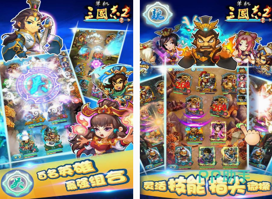 这不仅是单机策略游戏,更是以三国志为题材的,卡通的人物设计以及所具备的百名英雄角色,通过自由组合的方式,能够成为战场上非常厉害的团队。还有六大职业以及所具备的六种天赋,在每次战场上,都能通过灵活技能,简单的指尖操作方式,进行体验。配合上里面所具备的三线剧情,让你有不一样的三国就是。