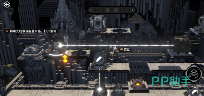 第一关属于入门级别,难度较低。玩家开启寻宝人挑战后,可直接跳跃至首个交互点,随后跳往第二个交互点,完成光线调节即可领取奖励。第二关的操作稍有变化,需先跳上初始平台,再跃至下一个平台并点击交互按钮,使镜面结构上升,平台随之缓慢下降。落地后向左移动,准确跳入中央交互区域即可完成任务。