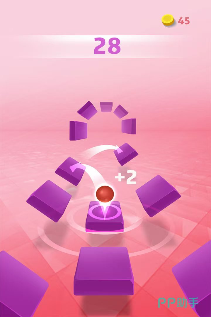 《保护球球跳一跳》是一款好玩的闯关游戏,打开游戏屏幕中会有一个小黑球,需要让小黑球掉落到地图当中的方块上,每一次精准掉落都能得分,可以灵活转动角度,保证小球的掉落方向,而且随着得分越高,挑战的节奏也会越快,惊险而刺激的氛围,体验不一样的节奏感,跟着音乐的旋律跳动,并且关卡当中的色彩每一关都不一样,能很好缓解眼疲劳。