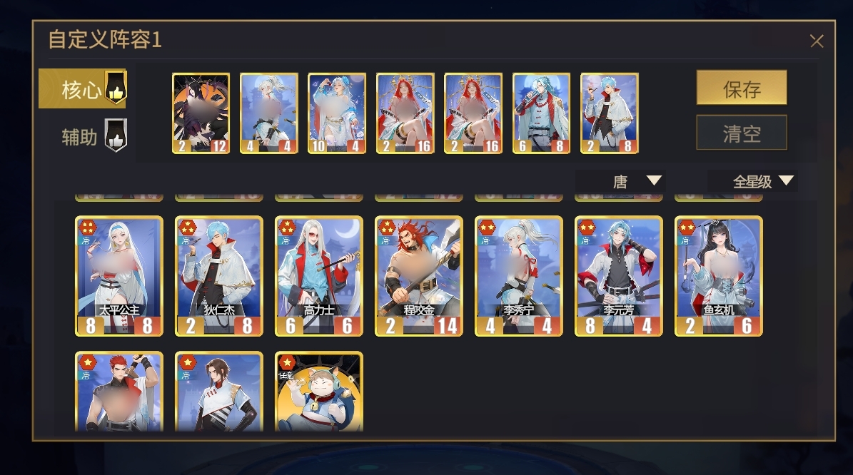 该体系以李秀宁与杨玉环为双遗计启动点,前置部署后快速阵亡,配合玄武的“遗计二次触发”特性,高频召出禁军单位。同时激活武则天的群体鼓舞技能,为全体唐系武将提供全属性加成。前期依靠禁军数量优势压制战场节奏,为武则天争取安全发育窗口;待其基础属性显著提升后,自然承接主输出职能。推荐配置:李秀宁、杨玉环、玄武、武则天(×2)、长孙无忌、狄仁杰。