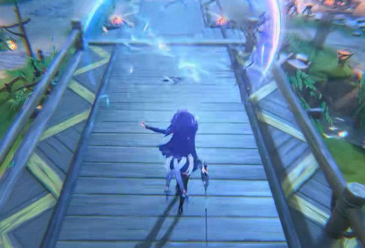 在发动突袭时,末音会以双剑划出半月轨迹,随后瞬移至敌人身前展开高速斩击。此技能不仅具备强大杀伤力,还赋予她在遭遇敌方攻击时迅速闪避的能力,兼具进攻与生存优势。