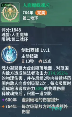 人面魔蛛魂环:可以给范围内的敌人造成物理性伤害,而且还会在两秒的时间内去吸引敌方。在每一次积聚敌方的力量时,还会形成少量的伤害。