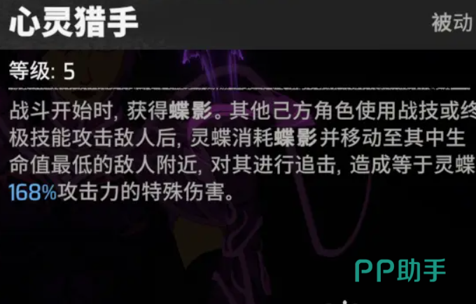 灵蝶身为变种人,拥有强大的心灵感应与精神操控能力。她的被动技能“心灵猎手”在同阶追击型角色中表现突出,能够自动锁定生命值最低的目标进行攻击,非常适合在副本战斗中完成精准收割。该特性使她在清理残血敌人时具备极高效率,尤其适用于需要快速终结敌方单位的场景。