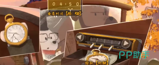 在车厢里还有一定的互动玩法,这里需要玩家,获取到关键的物品时钟。时间与现实时间不符合,这个时候玩家要一直点击时钟将时钟打碎。之后重新组装好时钟,这个组装时钟的教程在车厢的抽屉里。