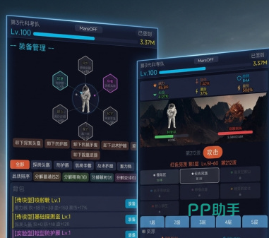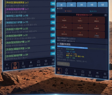 破译过程零手动干预,纯靠碎片收集触发自动完成。所解锁区域等级越高,挂机产出装备的基础品质与附加属性越优。研究点作为全局通用资源,可通过挂机收益与火星文破译双重途径获取,用于三类关键升级:提升飞船等级(影响离线收益上限与探索速度)、强化科考队成员属性(增强攻击力与防御力)、激活天赋技能(如暴击率加成、稀有装备掉落概率提升)。