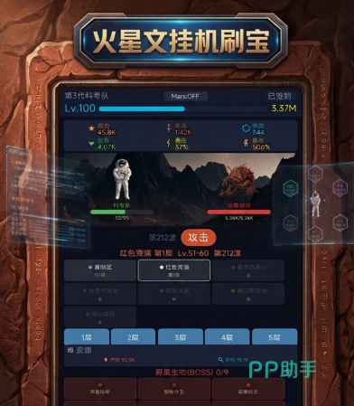 《火星文挂机刷宝》怎么玩?一句话概括:以挂机为基底,以研究点为纽带,串联飞船养成、科考队建设与火星文解密三大成长轴线。全程无复杂操作,无强制在线时长要求,节奏舒缓但成长反馈清晰,长期游玩能积累显著正向体验。
