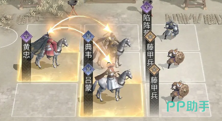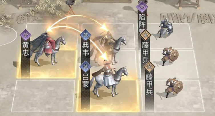 在布阵时需注意:黄忠必须放置在典韦身后的追击位置,且吕蒙与典韦应处于同一横排,这样才能充分发挥技能联动效果,为黄忠创造良好的输出空间。