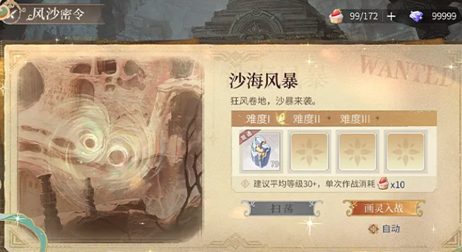 “风沙密令”为挑战型副本,设有多个难度梯度。通关后支持一键扫荡,大幅提升资源获取效率;每次挑战均可获得黄金货币,难度越高,单次产出越丰富。