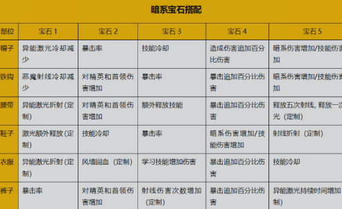 完成雷龙宝石基础配置后,需按装备部位精细化补充功能词条。头部与足部应侧重【技能冷却缩减】与【暴击率】双修:前者压缩雷龙衔接间隙,保障连招流畅度;后者提升暴击触发频率,在面对高血量目标时强化真实伤害覆盖率,显著提高容错空间。其余空余位置可填充【伤害追加百分比】等通用输出词条,兼顾稳定性与上限。相较而言,暗系构建逻辑截然不同,其核心聚焦于【恶魔射线】与【异能激光】双技能协同,强调高频释放与持续压制。