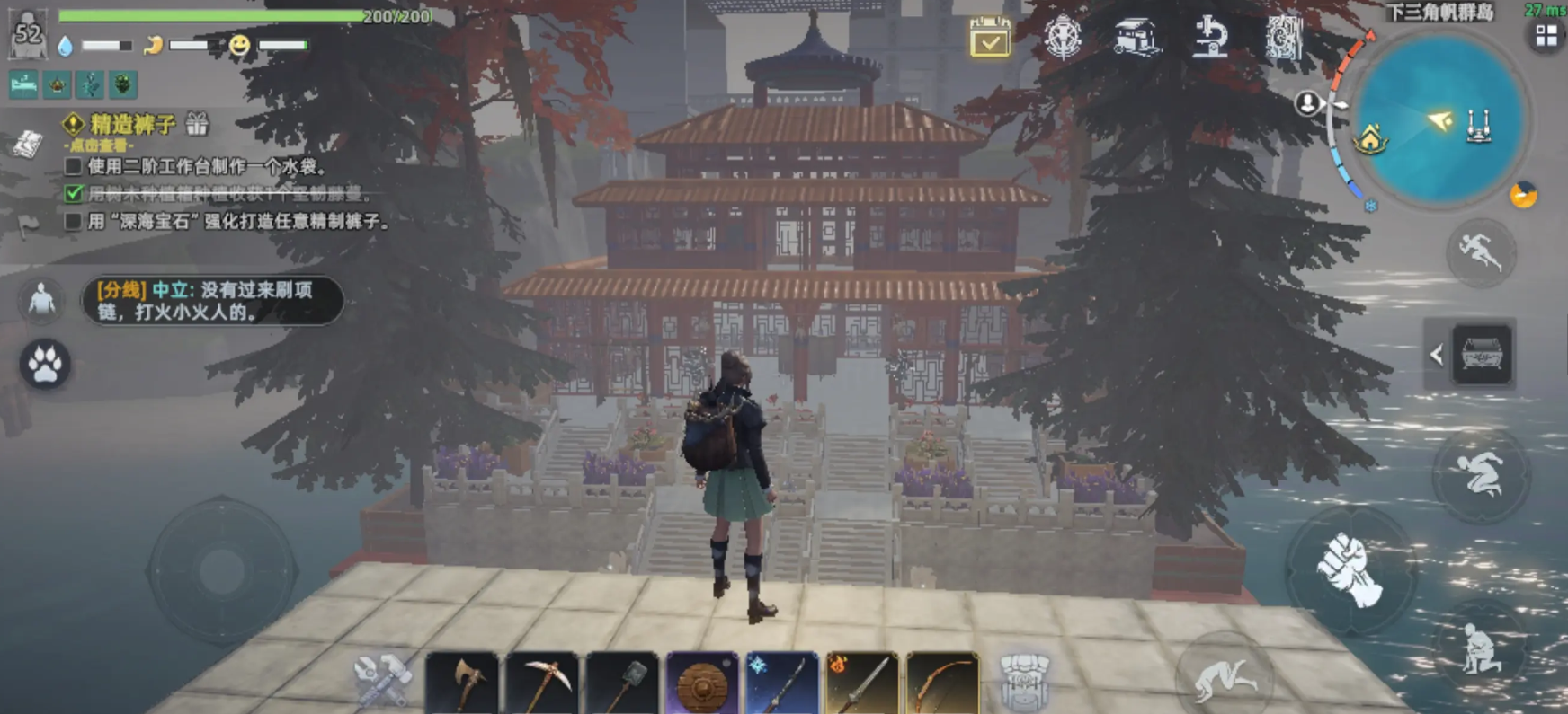 最后一步是安装门窗与封顶作业。屋顶要确保密封防雨,可选用木板或多层材料叠加处理。门窗位置需合理布局,兼顾通风与安全。切记不可忽略周边防御措施,在房屋周围设置陷阱(如尖刺坑、绊线装置)可有效阻止敌人接近。如有条件,还可增设瞭望台,便于远距离观察环境动态,及时应对突发情况。