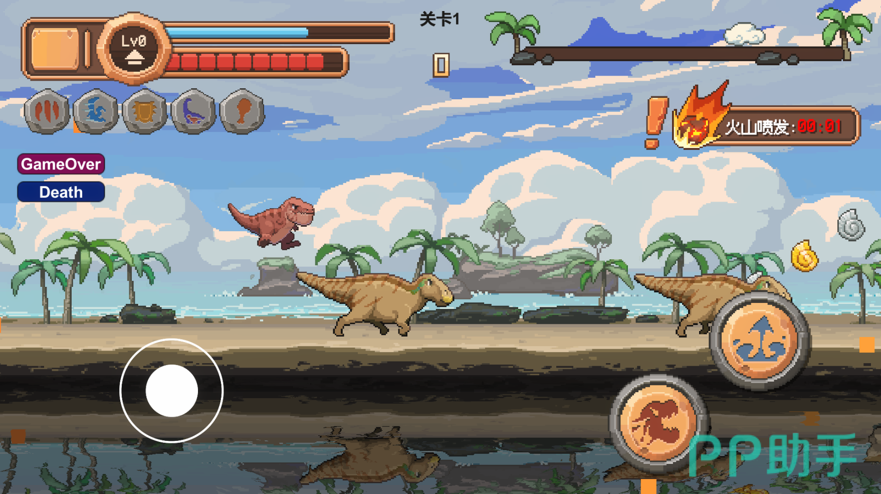 脑洞大开的游戏故事剧情设定,带玩家体验不一样的冒险之旅,可以丝滑的操作按键,指挥小恐龙前进的方向,面对突如其来的灾难,灵活躲避掉落的陨石,到达安全的区域,寻找猎物进行觅食,当然还没有成长起来的时候,要小心躲避其他恐龙,防止被偷袭,地图中比自己体型小的生物都可捕捉,吞食之后才能快速进化成长。