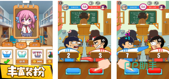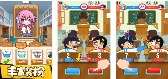 同桌大作战是款气氛塑造极为搞笑的双人同屏PK类作品,无需联网也可进行点触式PK很有创意,搞笑的表情和校园风格背景进行紧密结合,更有多样校服风格的装扮能让角色更显搞笑,校园主题的美术跟学生的角色完美融合,考验观察力和手速的PK体系也算别具一格,你也试着进入游戏跟同桌一起进行大乱斗吧。