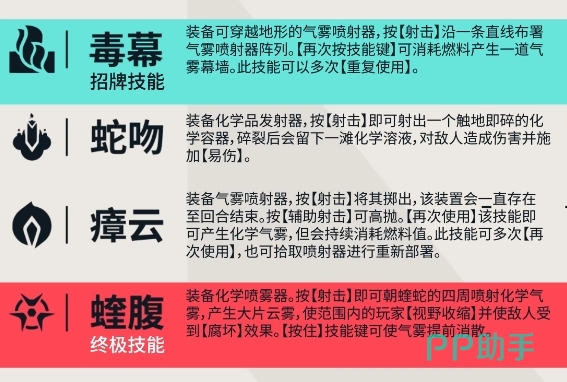 进阶技能毒幕,这个需要前置装备气雾发生器的技能,本质上是在战场上绘制临时安全区,经验丰富的蝰蛇使用者会根据战况发展,在关键节点释放环形气墙,既可用于保护己方伤员撤离,也能反向困住追击的敌人,特别在回合末期,毒幕可以将狭小的区域转化为临时避难所,让残存队员获得休息的机会,值得注意的是,该技能的能量消耗机制倒逼玩家进行风险决策,过度依赖会导致燃料枯竭。