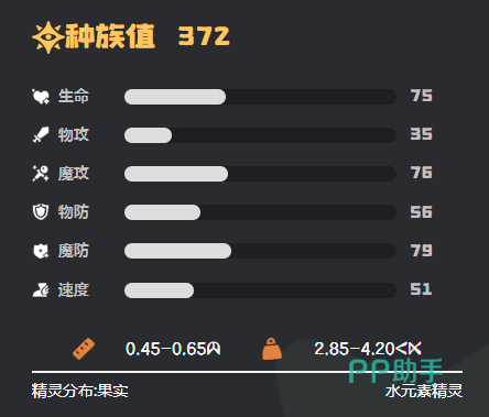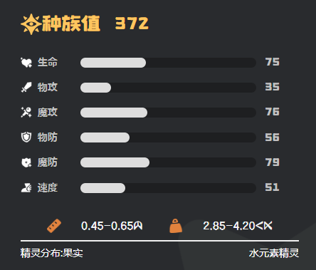 水蓝蓝的核心机制依托于“浸润”特性:每次使用水系技能后,自身所有技能的PP消耗均减少1点。该效果支持高频连招循环,显著提升持续作战能力。属性克制方面,对火系、地系及机械系精灵具有天然优势;需注意规避电系与草系对手,以维持输出稳定性。种族值分配侧重输出与双防平衡:魔攻84,物防58,魔防74,兼顾伤害上限与生存韧性;速度与体力为中等水平,在培养过程中建议优先强化魔攻与生命值成长。