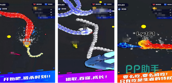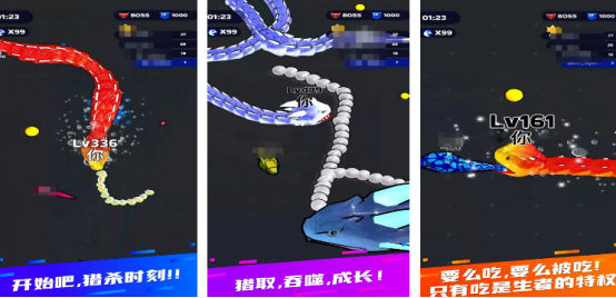 开局您只是一条非常小的蛇,拥有着灵活的身姿,在充满挑战的世界当中需要不断吞噬其他的食物,让自己变得越来越大,作为多人竞技手游,您将要和其他的好友共同走在同一个屏幕当中,通过吞噬比自己弱小的对手的方式,让自己变得更加强悍,此游戏也比较考验玩家的反应能力以及策略,您可以感受到非常刺激的实时对战的模式,也可以选择离线挑战突破自我。