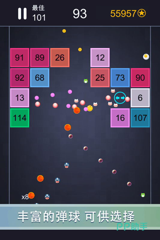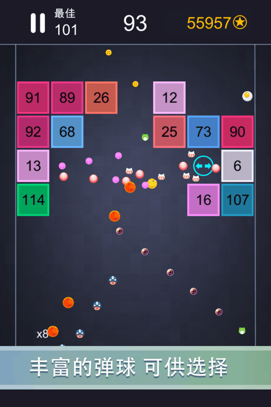 《幻影弹球》在这款游戏内大家需要运用大小不同的球球,来去竭尽所能的击打屏幕中的砖块,所设定的砖块类型和颜色重彩纷呈,而且会根据击打的距离来计算分数,玩家需要在过程中去掌握精通输入的节奏感,并且学会去预判砖块的下落方位,其中融入了众多足以令每个人眉飞色舞的球球皮肤。