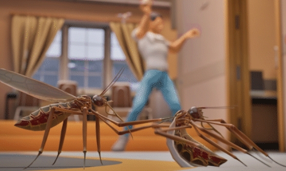 一般我们都是有个固定场景的,厨房,客厅或者是娱乐场所。苍蝇拍,枪,灭虫剂等等都是人类的武器,而且蚊子要依靠灵活的身法,吸血存活下去。注意玩法是一个人类,4个蚊子哦,还是挺有趣的。