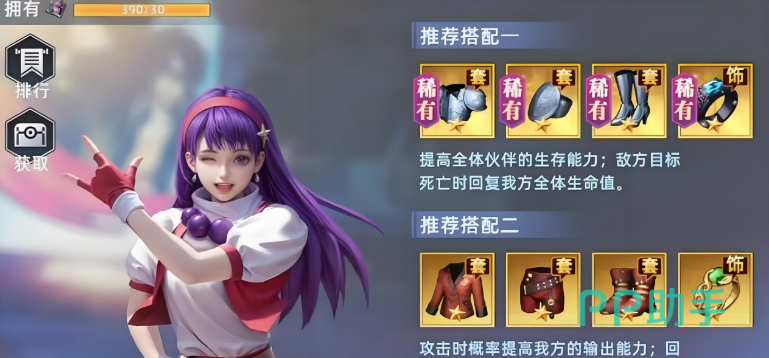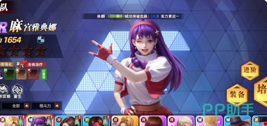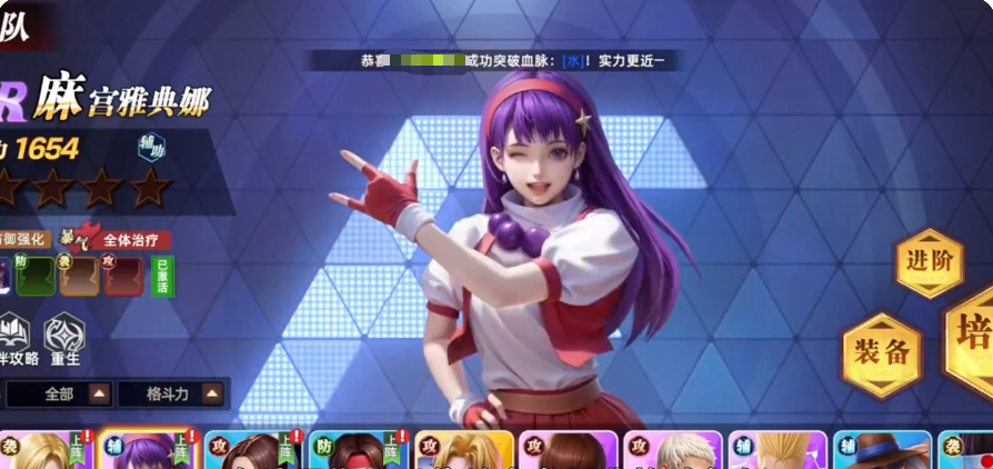 麻宫雅典娜是典型的治疗支援型角色,擅长维持团队续航能力。每当友方使用轻拳技能时,她可为其额外恢复50点怒气,加快技能释放频率。当任意队友生命值首次低于30%时,她将触发曝气状态,立即为该角色恢复15%最大生命值,此效果可持续两回合。