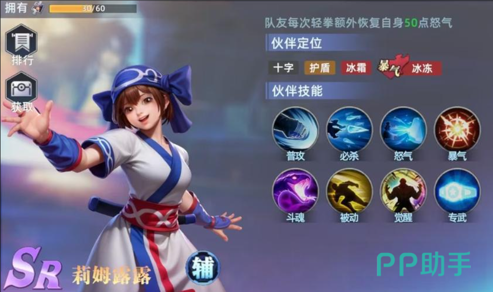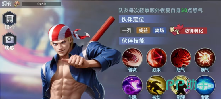 比利是一位功能性极强的辅助角色,能够显著提升队伍整体输出效率。他在完成一次重拳攻击后即可激活曝气状态,使自身接下来三次命中率提升20%。其必杀技针对单个敌人造成高额能量伤害,并有60%概率降低同排敌人的必杀免伤属性,削弱对手抗性,便于队友打出更高爆发。