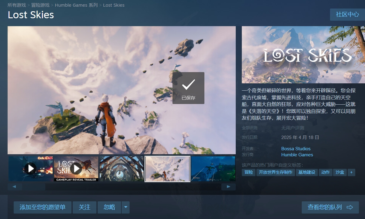 失落的天空将于2025年4月18日登陆Steam平台,预上线时间为4月17日,游戏暂未公布具体售价,不过按照同类游戏的售价来推断的,售价应该在199-299之间。