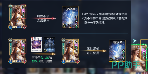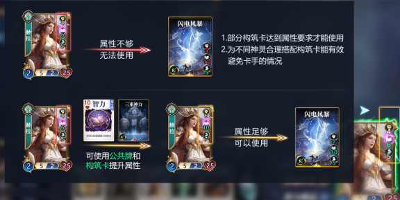 在体验的过程中,还需要注意有一些构建的卡牌,对于大家属性值会有一定的要求,大家在选择的过程中,也必须要满足这些要求,如果想要获得更大的效果。