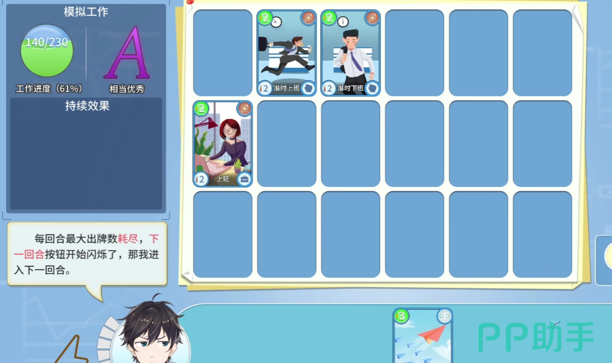 第二个推荐使用的卡牌是放飞思路,这张卡牌是游戏内进行报告填写效率最高的一张卡牌,如果玩家在当天并未抽到这一张卡牌,也可以使用思辨能力提高的卡牌,来保证玩家能够将报告在下班节点前完成。