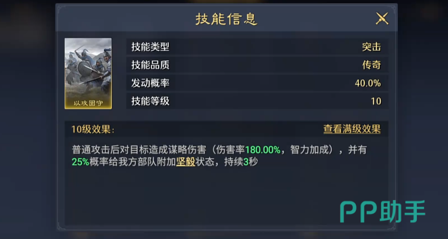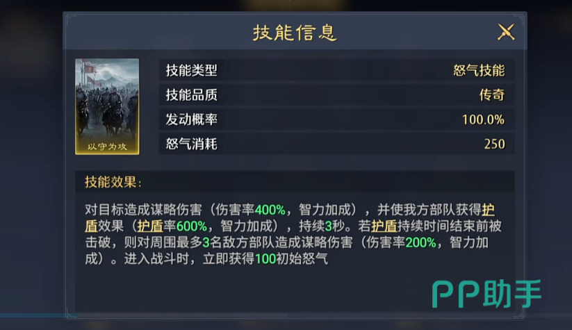 此外,“以守为攻”在战斗开始时即可为队伍提供100点初始怒气,大幅加快大招释放节奏,提升前期压制力。配合荀彧的“佐世之才”与郭嘉的技能链路,能够实现快速衔接输出。特别是荀彧的技能,只要成功打出谋略伤害,就能触发500%的高额倍率,并且发动概率达到100%,确保稳定输出。