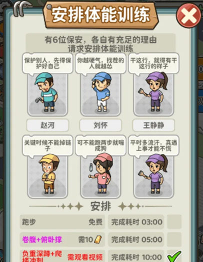 实战环节注重沉浸式交互体验:当遭遇盗窃、滋事等突发状况时,玩家需快速调派合适人员、选择应对策略并完成现场控制;此外还可组织团队建设活动,如模拟对抗训练、体能强化课程等,增强成员协作能力与职业归属感。系统还会不定期发放稀有设备奖励,助力企业实现技术迭代与服务能力跃升。