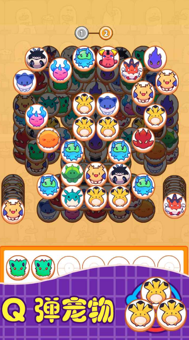 这款游戏也非常适合喜欢消消乐类型的玩家们。大家可以看到在自己的屏幕上出现了许多不同的宠物,而你要做的就是挑选三个相同的宠物,并且把它们放到下方的框里进行消除。不过由于宠物们都叠在一起,有很多层,因此也比较考验大家的观察力哦。