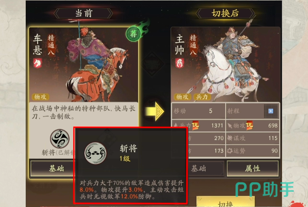 以关羽为例,其基础属性成长优异,可统率骑兵、弓兵及战车单位。推荐转职方向为勇将路线,不仅能强化自身攻击与防御能力,还能在正面推进或封锁要道时发挥极高战斗力,实现以少敌多的压制效果。配合“威震华夏”这一高爆发技能,可在短时间内打出成吨伤害。若再搭配诸葛亮提供控场支援与张飞增强突击能力,则能有效弥补缺乏持续突进的缺陷,在面对多股敌军时依然保持强大威慑。