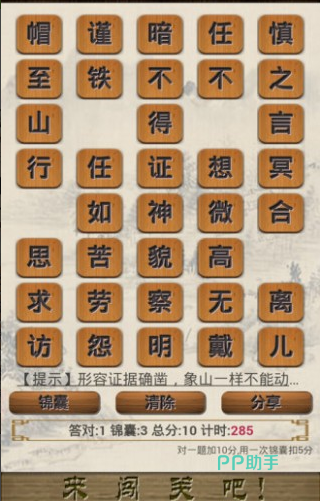 各位朋友,今天想和大家分享一款超有魅力的成语闯关游戏。当玩家打开它,就像推开了一扇通往成语奇妙世界的大门。每一关都是一次独特的挑战,那些耳熟能详又或是稍显生僻的成语,如同一个个等待被解开的谜题。在闯关过程中,玩家仿佛穿越回了古代,与文人墨客一同舞文弄墨。成功答对时的那份喜悦,就像找到了宝藏一样珍贵。它不仅能让玩家在轻松愉快的氛围里积累成语知识,还能锻炼思维能力。