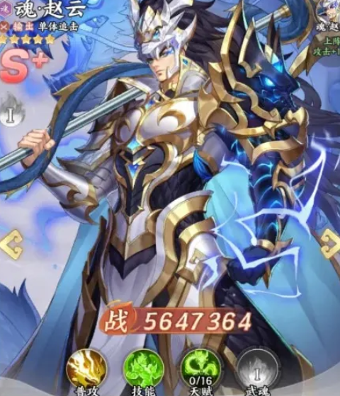 第二位是魂·赵云。该武将在单体输出框架下融合多重战术功能:一魂即解锁减伤效果,提升前排容错率;随魂阶提升,其必杀技可对敌方施加削弱状态,并在高魂阶段生成群体护盾与伤害抑制效果。尤为关键的是,武魂系统对其伤害增幅存在显著乘区加成,配合特定阵容可实现越战能力跃升,属于攻防一体、节奏可控的全能型主力。