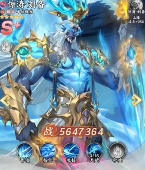 首位推荐为惊涛刘备。该角色定位为高爆发单体输出型武将,其命魂基础属性成长显著,单点伤害系数处于全游戏前列。核心机制在于“怒气反哺”:当自身怒气值低于阈值时,可无视常规限制即时恢复怒气,大幅提升技能释放频率;同时,其主动技附带一次强制普攻追击效果,此机制在当前版本中具备稀缺性。若培养至4星,其天赋还能为相邻友方提供攻击力加成,进一步强化队伍整体DPS效率,是兼具启动速度与持续压制力的回怒体系核心。