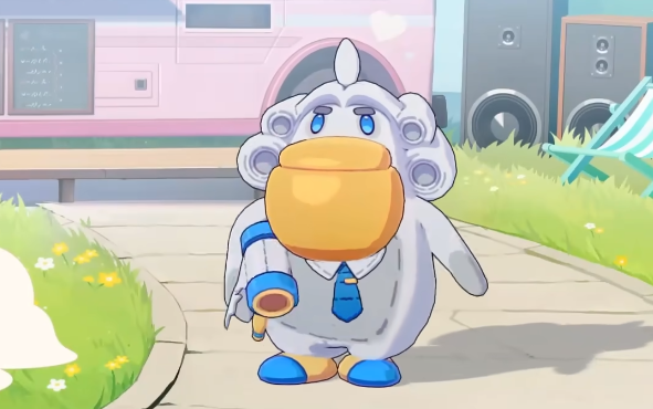 鸭法士是一位形象鲜明的精灵,通体以白色为主色调,搭配醒目的蓝色领带与装饰元素。其最具辨识度的特征是夸张的鸭嘴造型与独特发型,手持象征权威的法锤,展现出强烈的舞台感。在游戏中,他常幻想自己是一名主持正义的法官,这种富有戏剧性的性格也反映在其技能表现上:每次施法都会以审判形式发动魔法攻击,并附带一定概率的眩晕控制效果,为团队创造输出窗口或打断敌方关键技能。