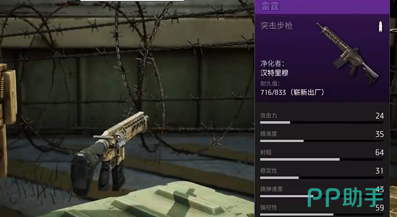 雷霆拥有24点攻击力、64射程、63换弹速度、25弹匣容量和59操控性,是一款输出能力极为突出的突击步枪,在中远距离交火中具备强大的压制效果,深受追求高伤害输出玩家的喜爱。然而其精准度仅为35,稳定性也仅有31,导致连续射击时枪口抖动明显,弹道扩散较为严重;
