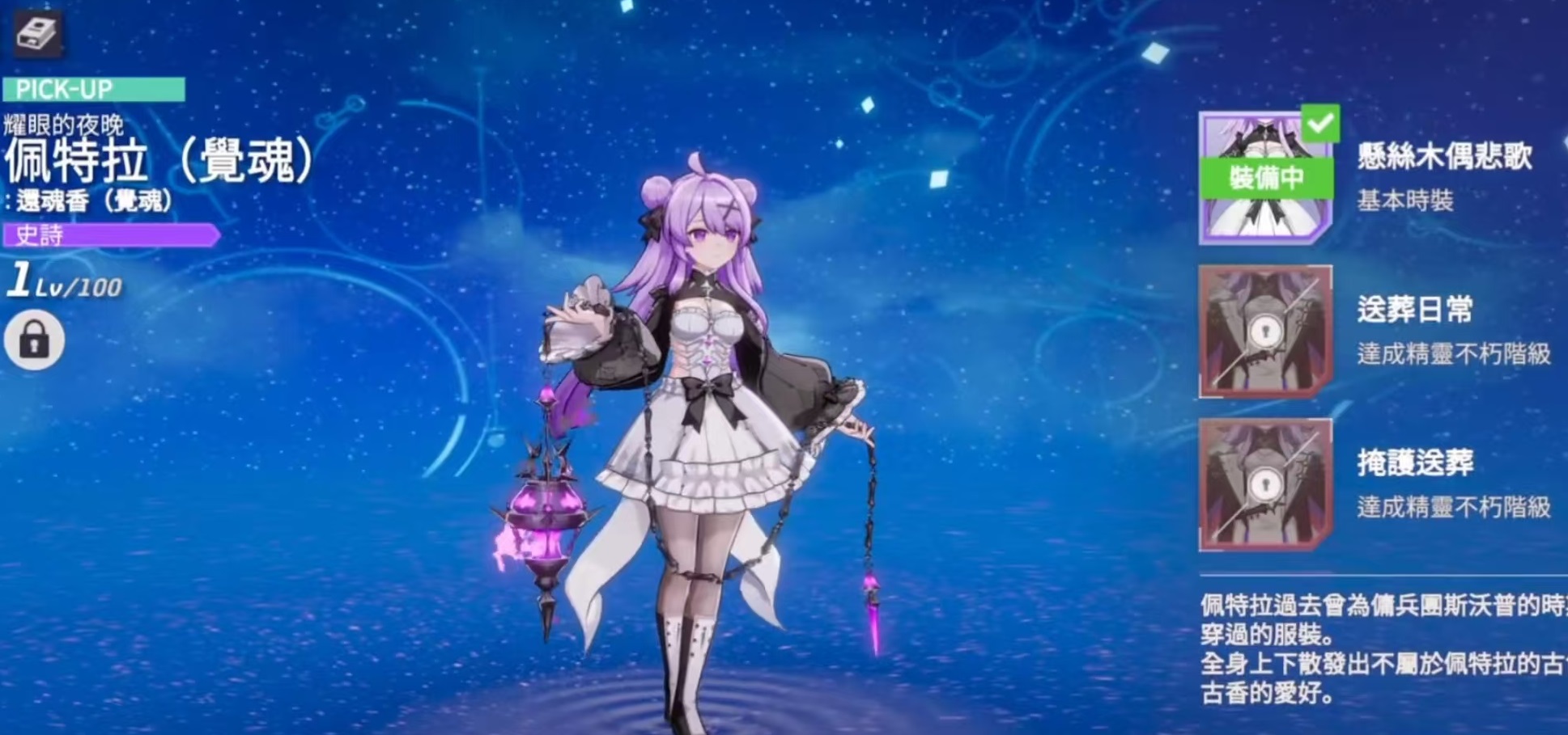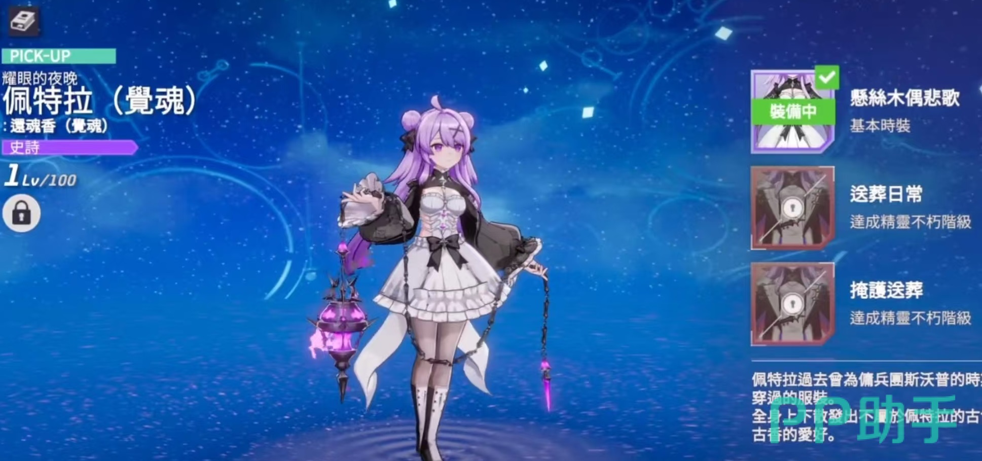 终极技能【诅咒之剑】为队长联动技:当队伍中队长精灵释放主动技能时,佩特拉觉魂将协同降下诅咒之剑,对敌方全体造成高额诅咒属性伤害,强化团队爆发节奏与状态覆盖率。