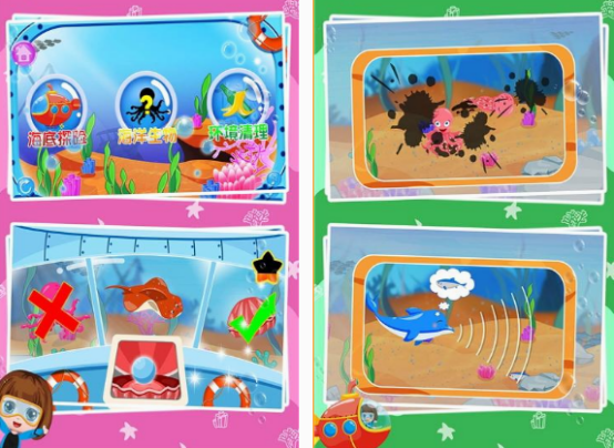 这款采用的是比较简约,又清晰的画面进行设计,既能帮助你在海底的世界当中探险,还能遇到更多的海洋生物,仿佛置身与其中一样。但如果出现了环境特别脏的情况下,你也需要及时的完成清理,涵盖海底世界当中大家熟悉的各种鱼类,包括鲨鱼甚至是八爪鱼等,让大家在玩的时候,了解更多海底世界的知识,也是适合儿童玩的。