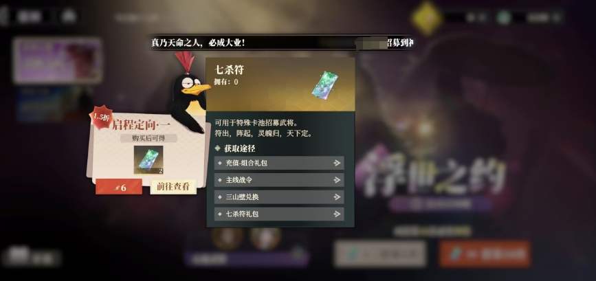 除了直接用三山壁购买七杀符之外,还有一些其他的获取途径,比如说通过充值组合礼包就可以获得七杀符,主线战令完成相应任务后也有给七杀符的情况,当然如果大家不介意氪金的话,也可以直接花钱购买七杀符。